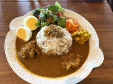 メニューは、ドリンクがセットの「カレープレート」(1,650円)やクロックムッシュ(1,380円)がある。スイーツは「チーズケーキ」「ガトーショコラ」(以上550円)、「プリン」(450円)。ドリンクは「ブレンドコーヒー」(580円)、「カフェラテ」(680円)などがある。「お客さまに少しでも喜んでもらおうと、2カ所の窯元の食器を使い分け、盛り付けの彩りや副菜などにも一手間加えている」と江利奈さん。