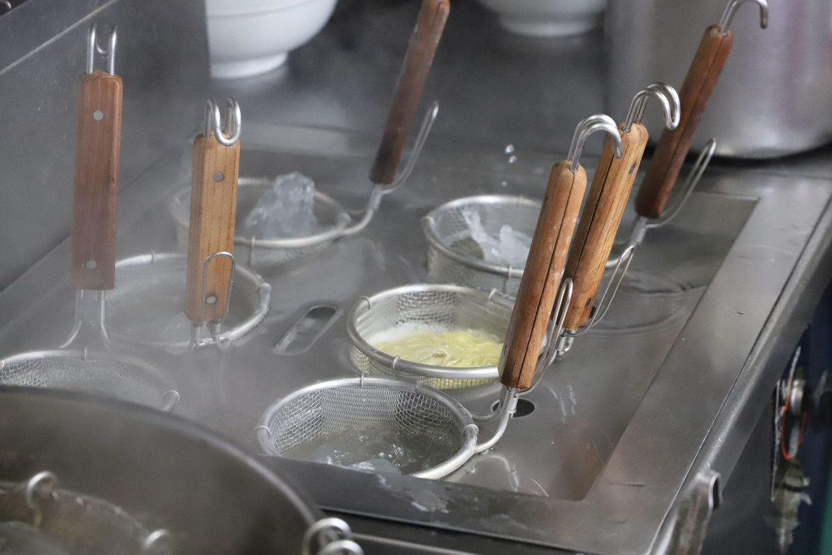 麺をゆでている様子