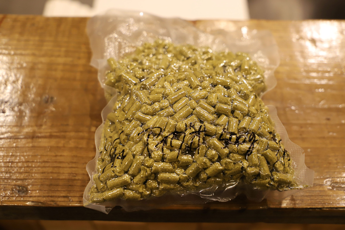 使うホップとモルトはそれぞれ1種。アメリカ産ホップは、かんきつ系の香りが強い「アイダホ7」。イギリス産のモルト「マリスオッタ」は「しっかりしたモルト感と強い麦の風味を感じる」と昌延さん=春日部のクラフトビール店「アンロック」、自家醸造ビールの提供開始へ