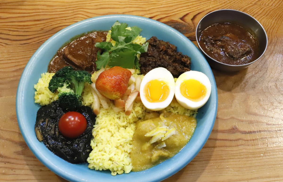 「こちら春日部市学校どおり前 カレー屋」(春日部市粕壁東1)が12月21日、埼玉大学教育学部付属小学校の児童が考案したレシピなど5種のカレーをのせた「冬至を感じる冬の旨味(うまみ)カレープレート」を販売する。