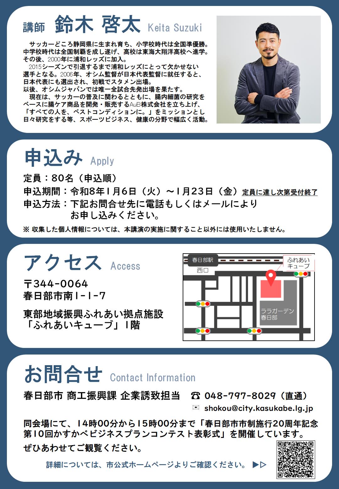 =春日部で元サッカー日本代表鈴木啓太さん講演