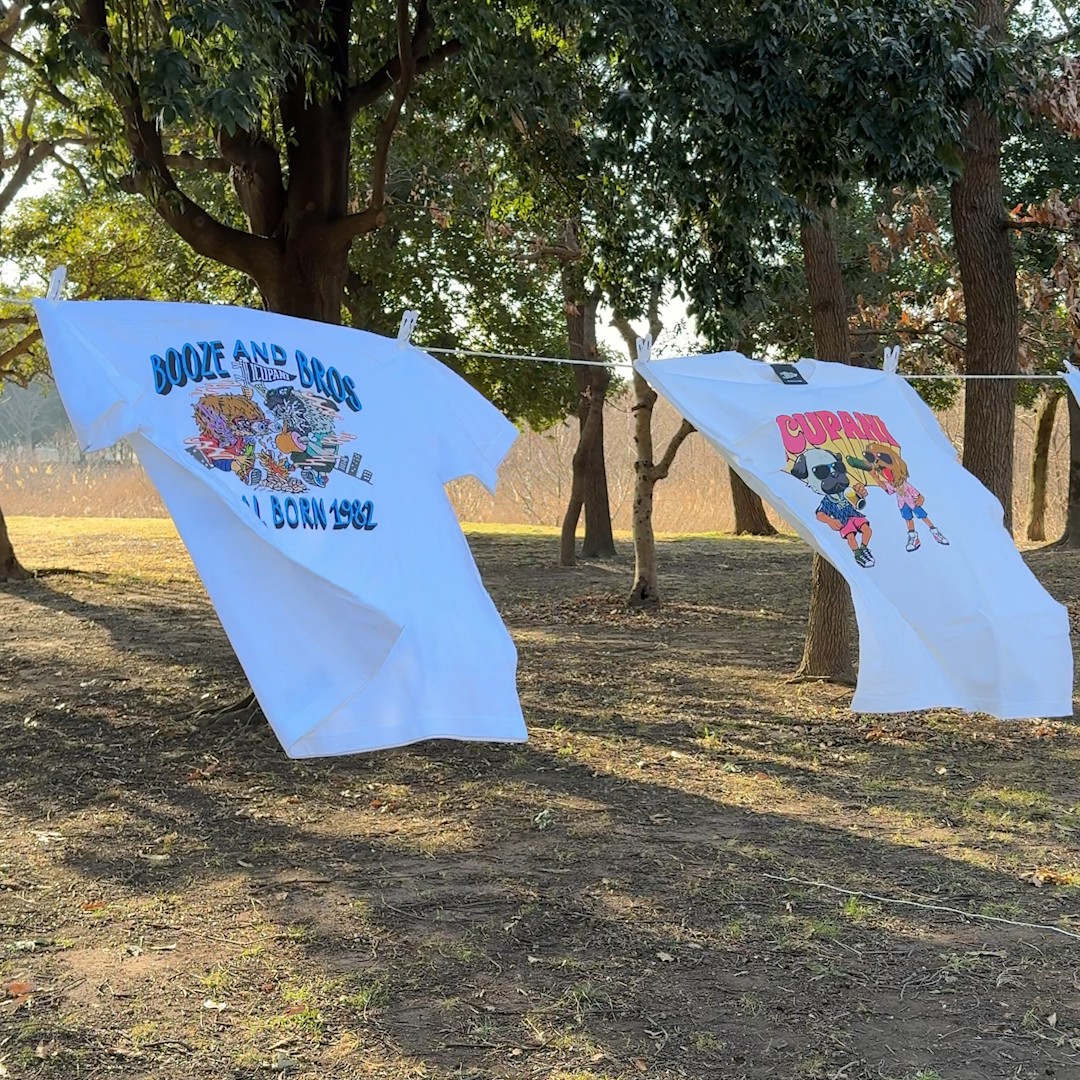 1日だけの美術館と題し、公募したデザインのTシャツを飾る。参加費5,500円=越谷の県民健康福祉村でマルシェイベント 公園リニューアル記念に