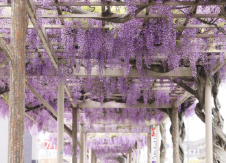 春日部駅西口側ロータリーの交通島にある「クレヨンしんちゃん」フラワーアートのシバザクラが見頃を迎えている。